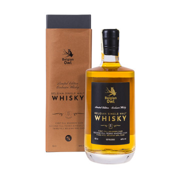 Belgian Owl 5Y PX Bourbon Cask Finish je exkluzivní limitovaná edice whisky, která zaujme každého milovníka jemné a sofistikované whisky. Jedná se o single malt whisky zrající 5 let, vyrobenou výhradně z belgického ječmene a destilovanou v tradičních