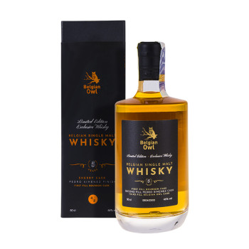 Belgian Owl 5Y PX Sherry Cask Finish je exkluzivní single malt whisky, která je vyjádřením bohatství a jedinečnosti belgického Hesbaye. Tato whisky je destilována výhradně z belgického sladového ječmene, který je udržitelně pěstován na jedinečném ter