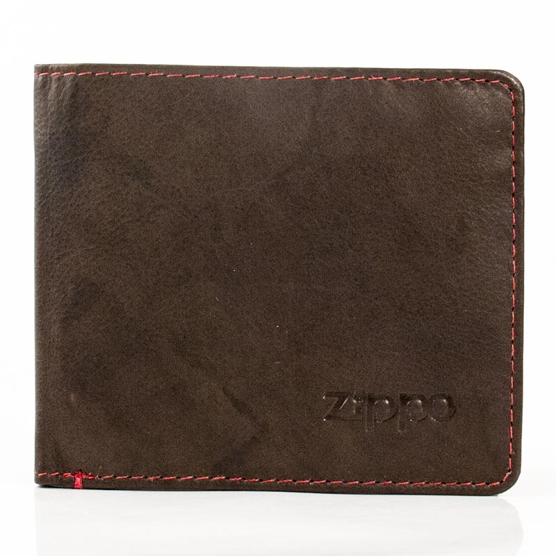 Pánská kožená peněženka Zippo, horizontální, s červeným prošíváním