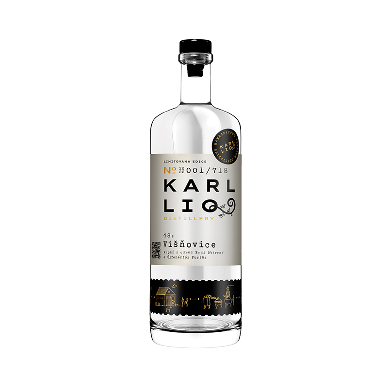 Karl LIQ Višňovice - kupáž 2022 je limitovaná edice v počtu 718 lahví tradičního ovocného destilátu z višní, kombinující vynikající chuť odrůdy Erdi Bötermo a nádhernou vůni odrůdy Ujfehértoi Fürtös, kde na jednu láhev bylo použito 4 kg višní.