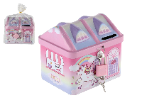Pokladnička domeček jednorožec plechová se zámkem 11x9cm