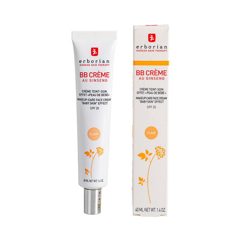 Erborian BB Creme Makeup-Care Face Cream "Baby Skin" Effect SPF20 Clair je tónovací krém ve světlém odstínu Clair, který byl oceněný jako nejlepší BB krém podle Vogue. Tento produkt kombinuje péči o pleť a make-up v jednom, poskytující lehké a přirozené krytí s okamžitým efektem "dětské pleti".