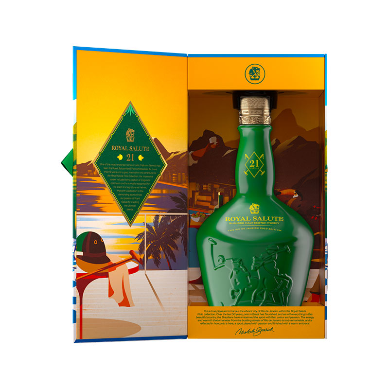Royal Salute Rio de Janeiro Polo Edition je limitovaná edice přinášející chuť i vůni, které vás přenesou přímo do pulzujícího brazilského města, kde se energie velkoměsta prolíná s klidnou krásou okolní přírody. Rio de Janeiro Polo Edition vzdává hold „Cariocas“ – obyvatelům Ria, jejich radosti ze života, smyslu pro eleganci a lásce k pólu.