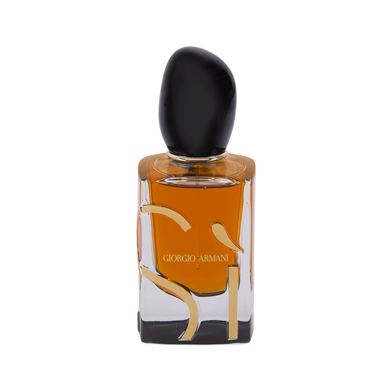 Flakon je typický pro řadu Sì, s luxusním vzhledem – zdobený logem „Sì” ve zlatém 3D provedení, s efektem zakouřené gradace u dna, která poukazuje na teplejší, intenzivnější charakter vůně.
