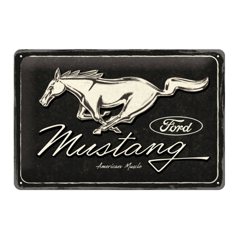 Plechová cedule: Ford Mustang (Horse Logo Black) - 30x20 cm