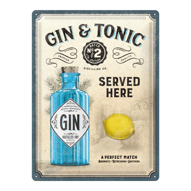 Plechová cedule: Gin & Tonic Served Here - 40x30 cm