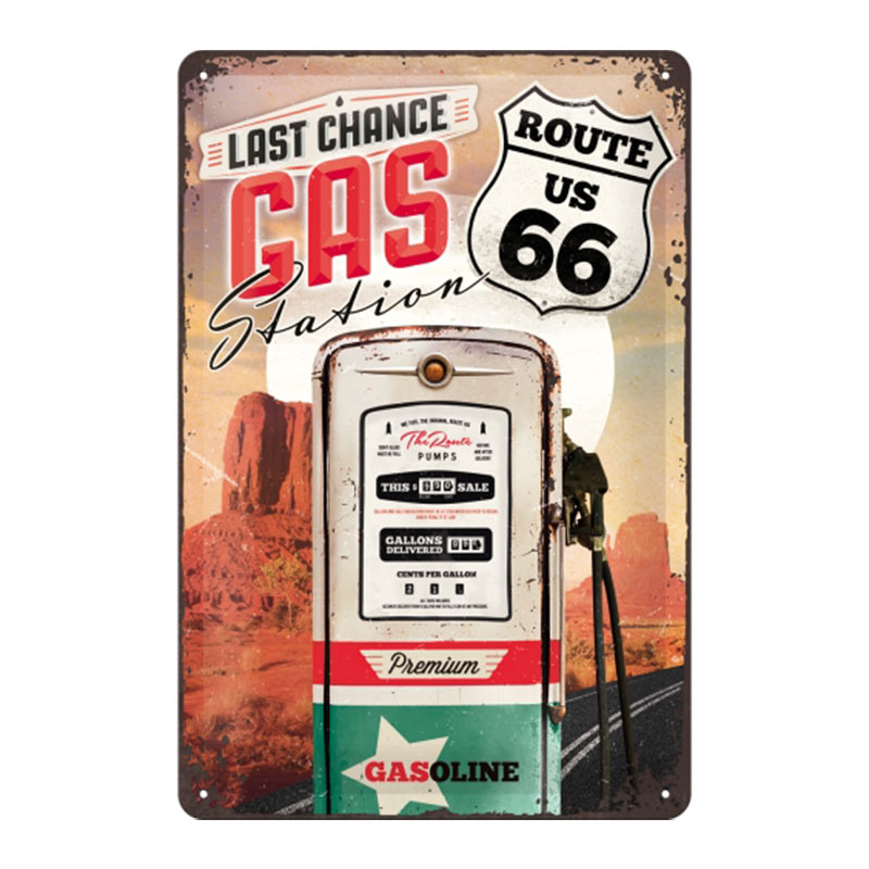 Plechová cedule: Route 66 (Gas Station) - 30x20 cm