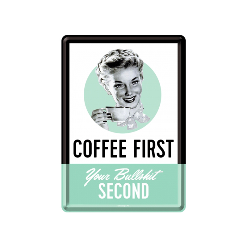 Plechová pohlednice - Coffee First